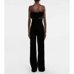 Promo 🎉 Saint Laurent Faux Fur-trimmed Cupro Velvet Jumpsuit 🌟