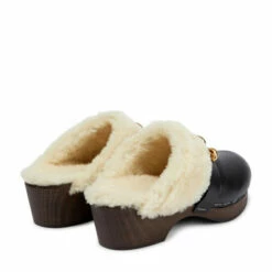 Best Sale ❤️ Saint Laurent Le Maillon Leather And Shearling Clogs ⌛