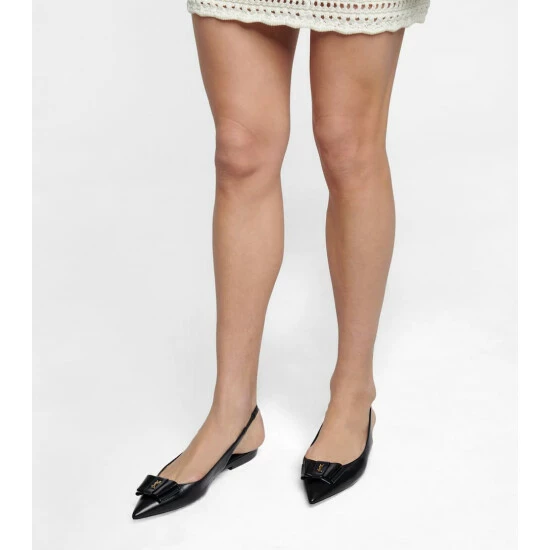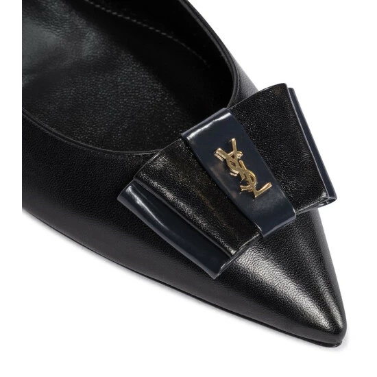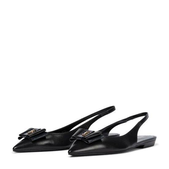 Build your most elegant looks from the ground up, courtesy of the Anaïs slingback ballet flats from Saint Laurent. They’re made from butter-soft black lamb leather, and shaped with pointed toes that bear the label’s coveted YSL monogram. Look closer to see the chic navy blue inserts on both bows.