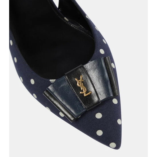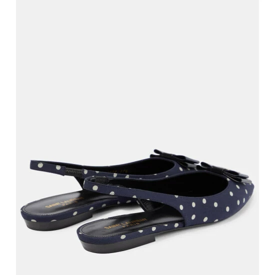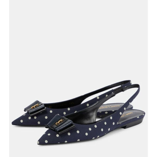 Build your most elegant looks from the ground up, courtesy of the Anaïs leather-trimmed slingback ballet flats from Saint Laurent. They’re made from polka-dot canvas and shaped with pointed toes that bear the label’s coveted YSL monogram. Look closer to see the chic navy blue inserts on both bows.