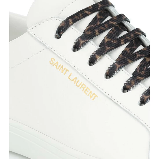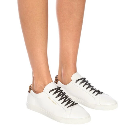 Presented here in crisp white with leopard print laces and a matching back stop, the Andy sneakers from Saint Laurent bring the label’s achingly cool appeal to off-duty dressing. The low-top design is crafted in Italy from smooth calf leather, the perfect canvas for the illuminated gold lettering. Put yours on heavy rotation with dresses and denim alike.