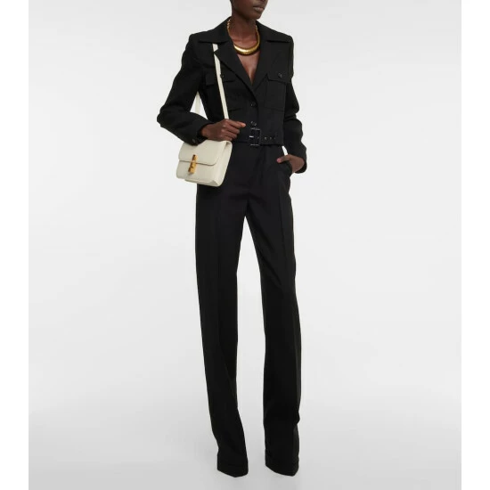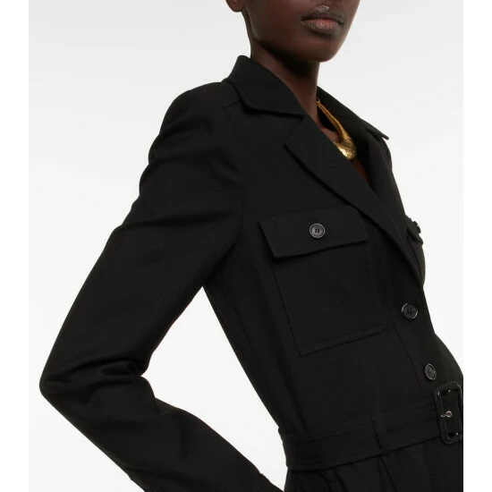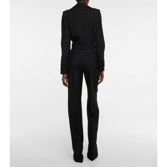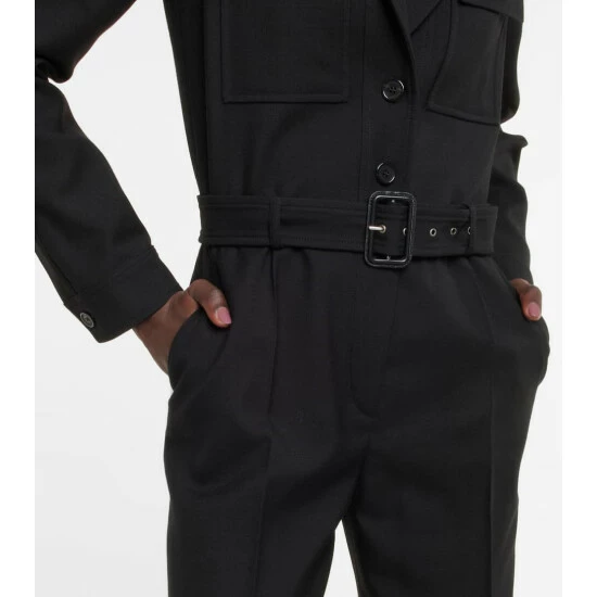 Made from wool, this jumpsuit is a retro-inspired design with a belted waist, a wide collar and pleated legs.