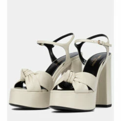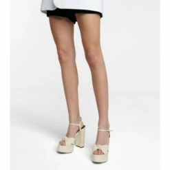 A seductive finish to every ensemble, Saint Laurent’s Bianca sandals channel ’70s party chic. Crafted in Italy from chalk white lamb leather, they have knotted straps that cross over the toes and buckles at the ankles. They’re set on platform soles with towering block heels that will elevate everything from flared denim to an LBD.