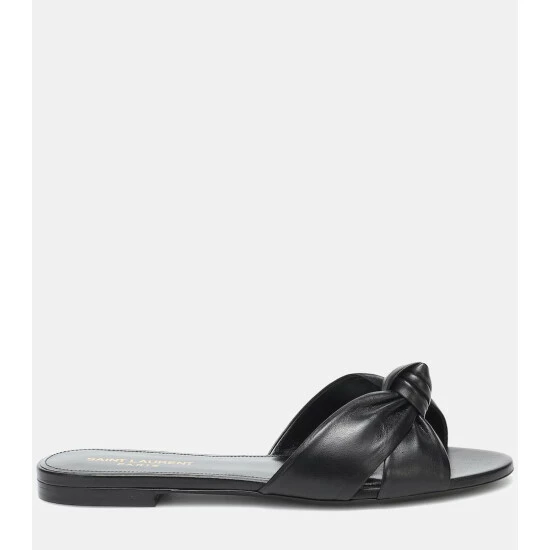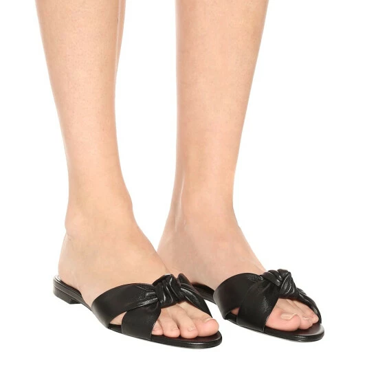 The family of Bianca styles from Saint Laurent now extends to these luxe black slides. Soft lambskin leather straps are knotted, riffing on this season’s most coveted design detail. Style for casual Fridays with a band tee and Bermuda shorts.
