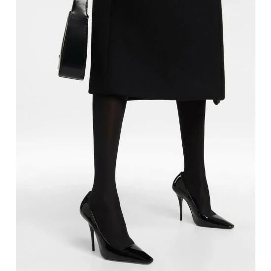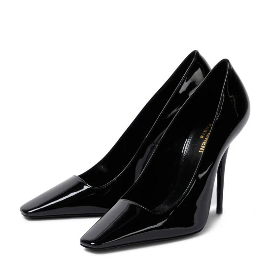 The Blade patent leather pumps show why Saint Laurent is an authority on evening glamor. Made in Italy, this all-black pair has an elegant silhouette, defined by the square toes and tall stiletto heel.