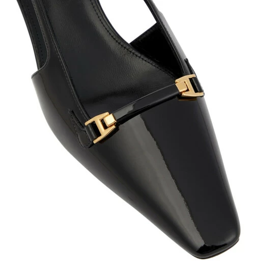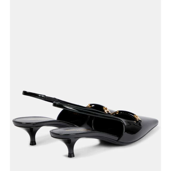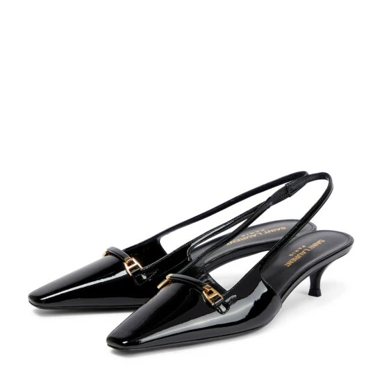 The Blade patent leather pumps show why Saint Laurent is an authority on evening glamour. They have a elegant silhouette, defined by pointed toes and slingback straps.