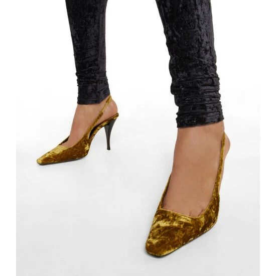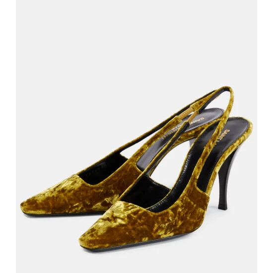 Add a touch of contemporary opulence to your footwear rotation with the Blade slingback pumps from Saint Laurent. They’re made from glamorous plush velvet and feature square toes and sculptural stiletto heels.