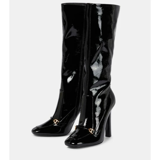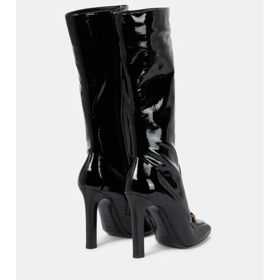The Camden boots from Saint Laurent are a chic, mid-calf height style that are modeled on classic pumps. They’re made in Italy from patent lambskin leather with squared toes, 105mm heels, and golden metal trims.