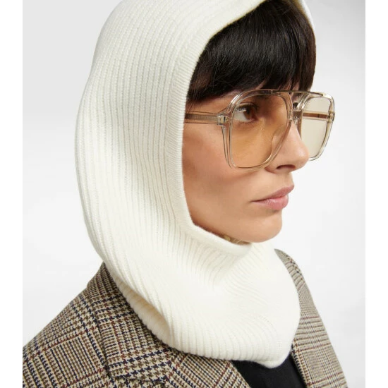 Create ensembles around this tactile cream-white hood from Saint Laurent. It’s made from pure ribbed-knit cashmere with a logo tag.