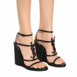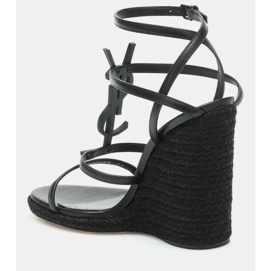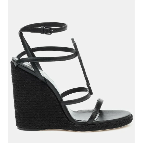 Usher Saint Laurent’s all-black Cassandra sandals into your SS20 wardrobe to channel the brand’s signature dark glamour. Made in Italy, this pair is easily recognizable thanks to the iconic, tone-on-tone YSL monogram atop the cage leather straps, while 115mm braided raffia wedge soles create a sensual arch.