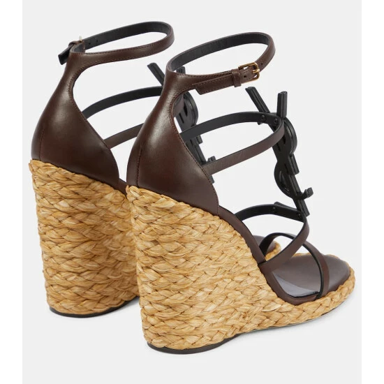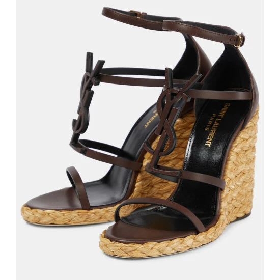 Saint Laurent’s Cassandra espadrille wedges are a chic summer staple. Set atop classic jute wedge soles, they feature slender straps and monogram plaques in smooth calf leather.