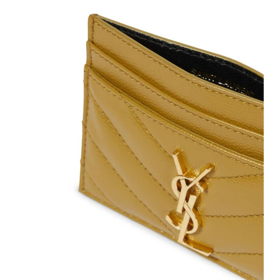 Saint Laurent’s Cassandre cardholder is a timeless must-have accessory. Made from quilted matelassรฉ leather in yellow, it’s a slim design with multiple slots and gleaming metal YSL logo hardware.