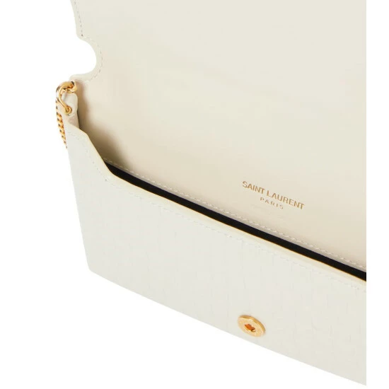 Cut from croc-effect white leather with a gold-tone metal YSL plaque, the Cassandre crossbody bag from Saint Laurent is the most elegant way to safeguard your smartphone. Sling it cooly over the shoulder or stow the strap in the interior and clutch it under your arm.