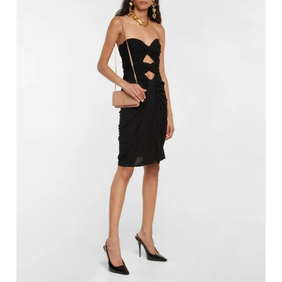 Hanging from a detachable chain and leather strap, this leather Cassandre phone holder from Saint Laurent has a magnetic closure and metal YSL logo hardware.