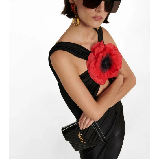 Saint Laurent updates its iconic Monogram Cassandre Small wallet on chain in timeless black. The sleek silhouette has been made from smooth calf leather with a quilted chevron finish. The label’s signature YSL detail adorns the design in a glossy golden tone that promises to bring a glamorous finish to your look, day or night.