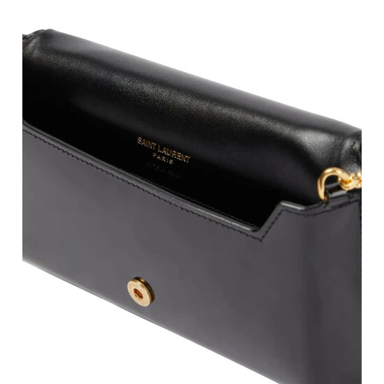 Saint Laurent updates its iconic Monogram Cassandre Small wallet on chain in timeless black. The sleek silhouette has been made from smooth calf leather and features the label’s signature YSL emblem.