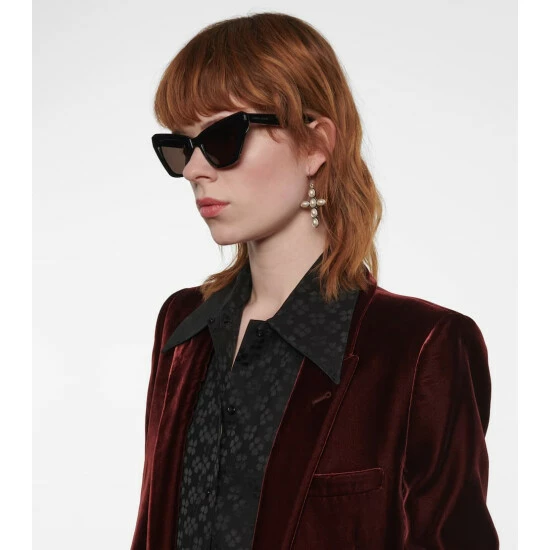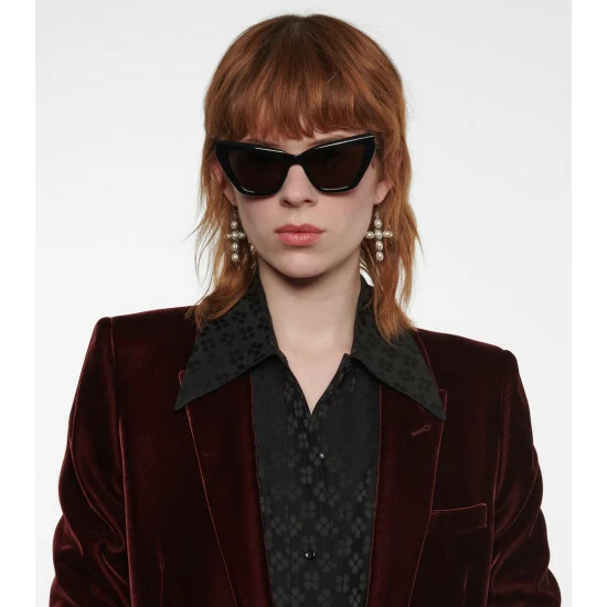 Saint Laurentโs latest all-black sunglasses in a cat-eye silhouette is a timeless accessory you need to invest in. Made in Italy, this pair has black tinted lenses for the ultimate chic edge, with subtle brand engraving in the temples for irresistible recognition. Please note the color of the protective case may vary.