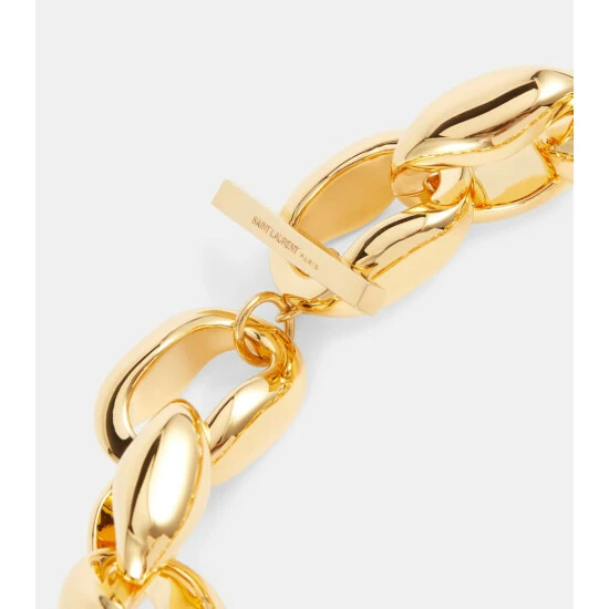 Made from golden metal, this bracelet from Saint Laurent has wide chain links and a logo engraved T-bar fastening.