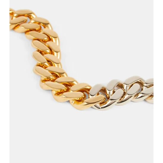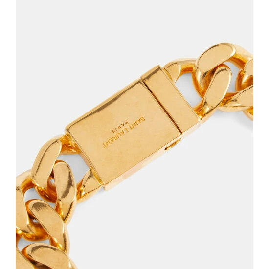 This bracelet from Saint Laurent will add a glimmer of gold to your look. The gold-toned curb chain is accented with silver-toned links and has logo engraving on the plaque.