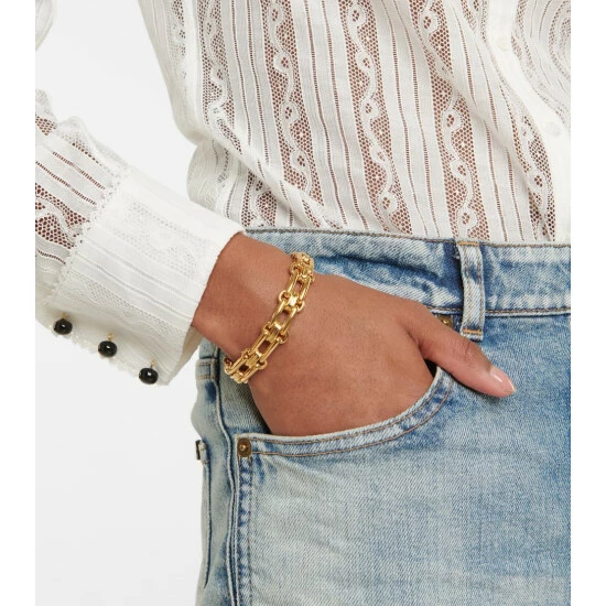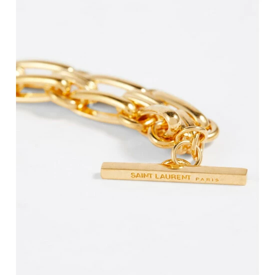 An elevated update on a must-have accessory, this chain-link bracelet from Saint Laurent is a statement-making finishing touch to your ensemble. It’s made from gold-toned brass, and fastens with a T-bar closure.
