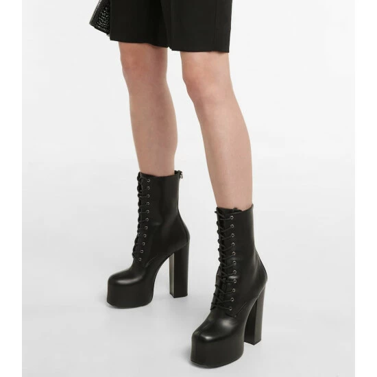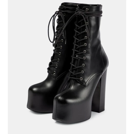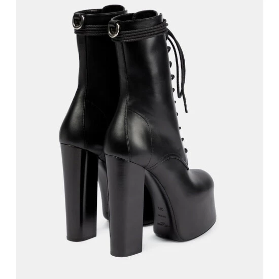 Set your footwear standards high with the Cherry ankle boots from Saint Laurent. This lace-up pair is made from smooth black leather and balances on vertiginous 145mm block heels and solid platforms.