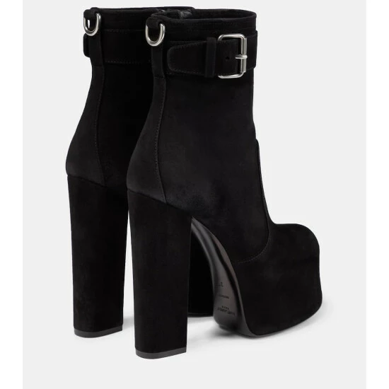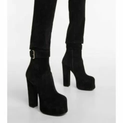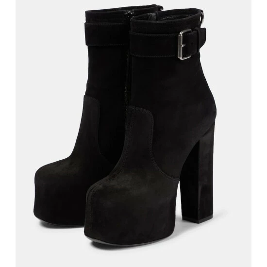Set your footwear standards high with the Cherry ankle boots from Saint Laurent. This buckled pair is made from smooth black suede and balances on vertiginous 145mm block heels and solid platforms.