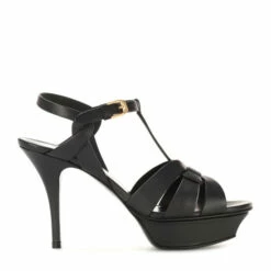 Set a new definition for glamour with Saint Laurent’s Classic Tribute 105 sandals. Elevated by a plateau sole and stiletto heel, this style features intertwining straps and a side-buckling ankle strap. Wear yours out on the evening accompanied by black skinny jeans and a shimmering top.