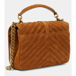 This brown suede update to Saint Laurent’s Collège shoulder bag is the investment piece topping our wish list. Made with a quilted chevron construction, it’s punctuated with golden monogram hardware and finished with long fringes.