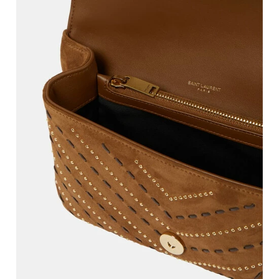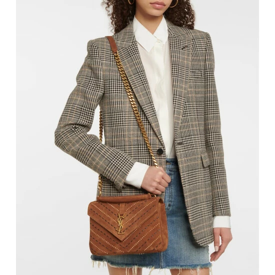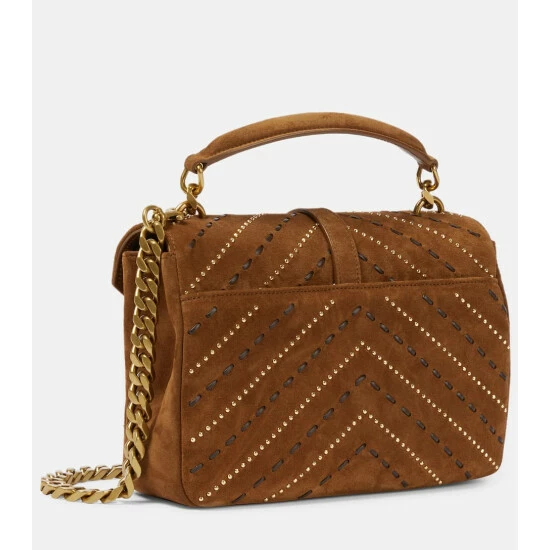 This brown iteration of Saint Laurent’s Collège shoulder bag is on top of everyone’s wish list. We adore the embroidered suede and antiqued golden hardware, as well as the signature YSL logo at the flap.