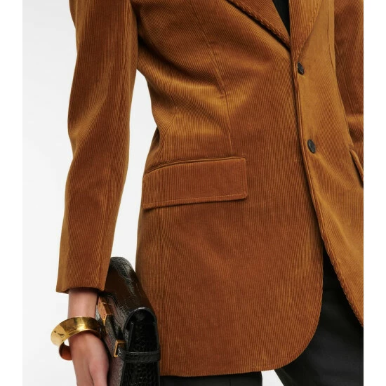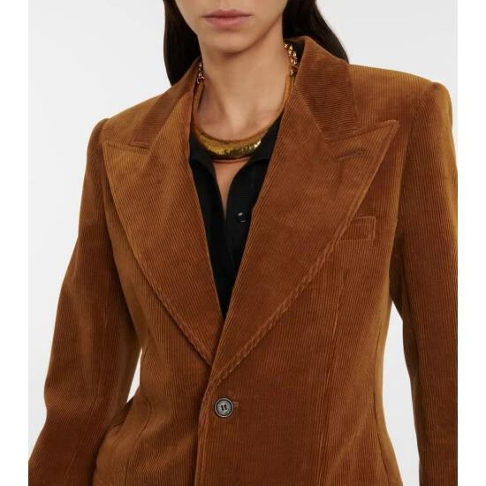 Saint Laurent infuses your suiting separates with this ’70s-inspired brown corduroy blazer. Made from cotton, it has peak lapels and a single-breasted buttoned front.