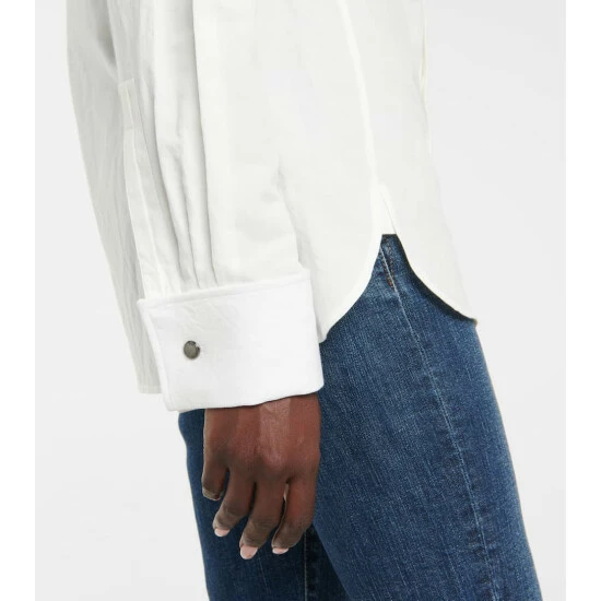 This white shirt from Saint Laurent is made in Italy from cotton and linen-blend twill with a subtly crinkled finish. Tailored for a slim fit, it’s embroidered with the label’s YSL logo at the chest pocket and features double cuffs.