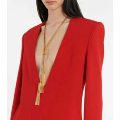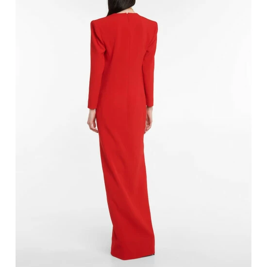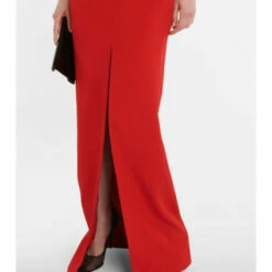Make a glamorous statement with clean designs like this gown from Saint Laurent. It’s made from crêpe and features a plunging V-neckline and a slit at the front.