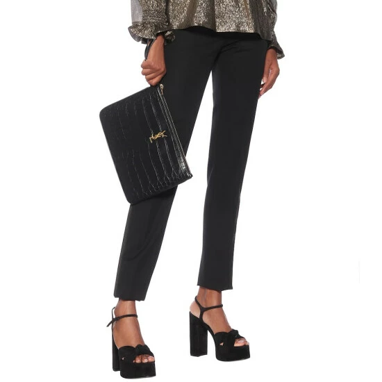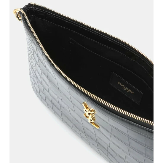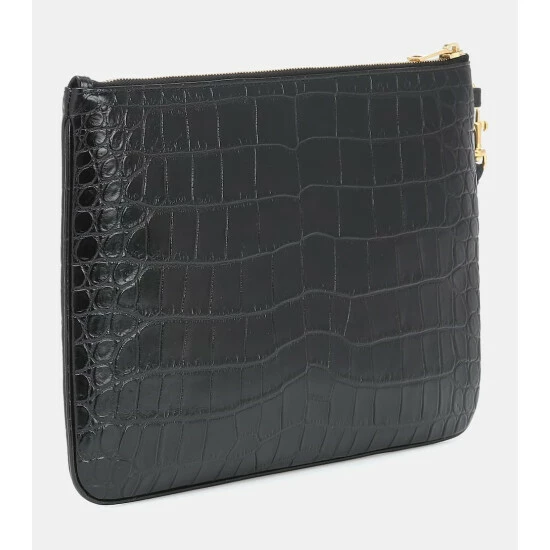 Coordinate your everyday tech essentials by choosing Saint Laurent’s tablet pouch, which comes with six card slots. Made from black croc-effect leather, it has a fabric lining and features the house’s YSL monogram in pale golden hardware. The detachable wristlet is a secure design feature that will help protect your precious accessories.