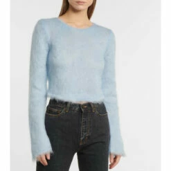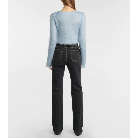 Refresh your knitwear edit with this soft mohair and wool-blend sweater from Saint Laurent. It features exaggerated sleeves and a cropped hemline.