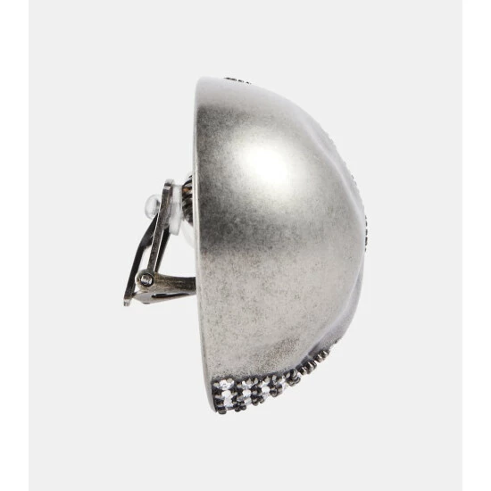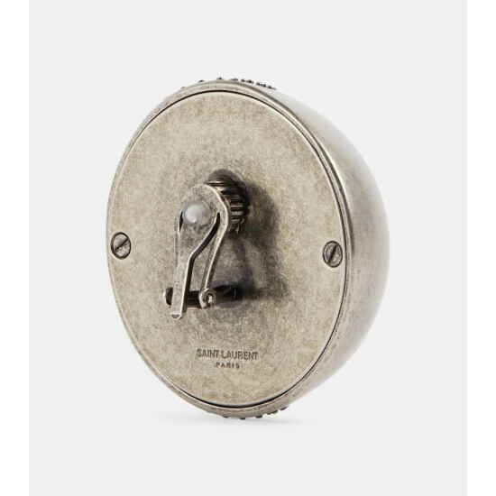 Finish your ensembles with these effortless half-dome clip-on earrings from Saint Laurent. Made from muted silver-toned brass, the oversized pair features asymmetric crystal encrustations and logo engravings on the back.
