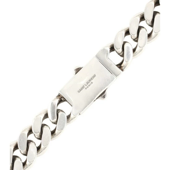 Adopt this season’s must-have accessory, the Cuban chain-link necklace from Saint Laurent. Made from solid brass, it has oversized curb links that fasten with a snap closure and metal plaque engraved with logo lettering. Wear yours with a black turtleneck dress and ankle boots to channel the label’s Parisian chic.