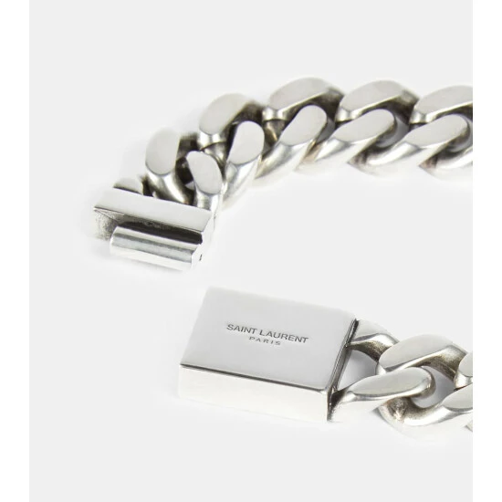 This silver-toned bracelet from Saint Laurent is an edgy addition to your accessories edit. Made in Italy from chunky chain-links, it features a logo engraved push-lock fastening.