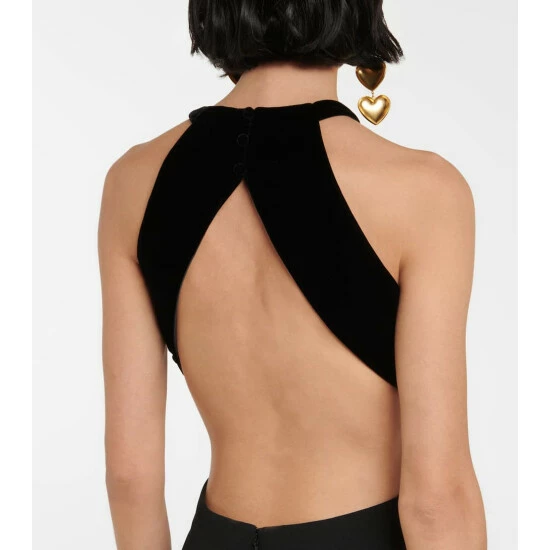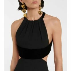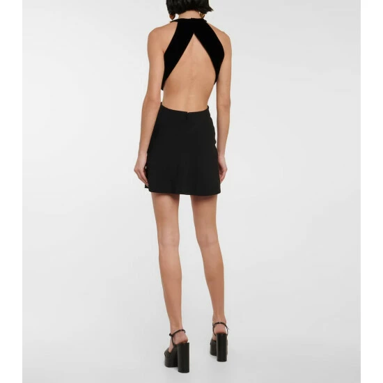 We can always rely on Saint Laurent for effortlessly chic styles like this LBD. Trimmed with velvet, it’s defined by cutouts at the wait and features an elegant halterneck top.