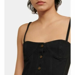 Rely on Saint Laurent for chic noughties-inspired styles like this cropped corset. The structured piece is made from black denim that is punctuated with embossed buttons and contrasting topstitching.