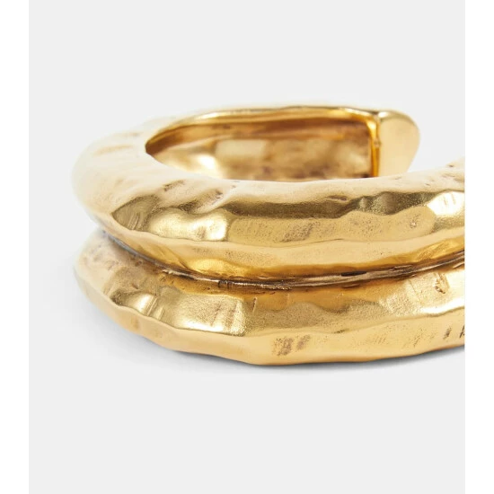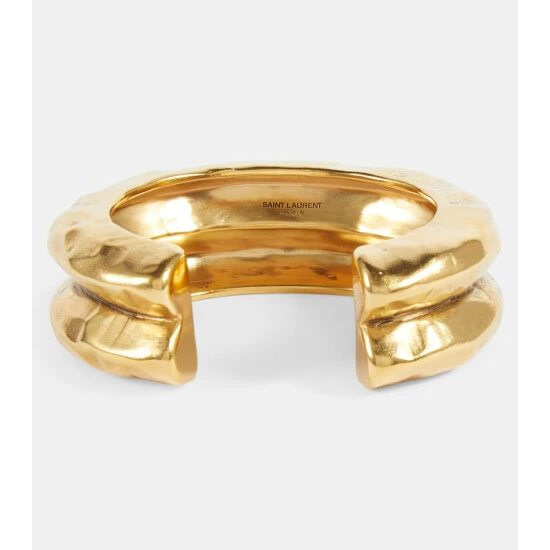 This distressed cuff bracelet from Saint Laurent will add an element of edge to your outfit. With sculpted ridges and holes, this slip-on open cuff has a bumpy crater-like texture.