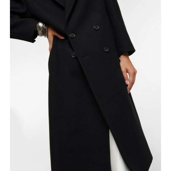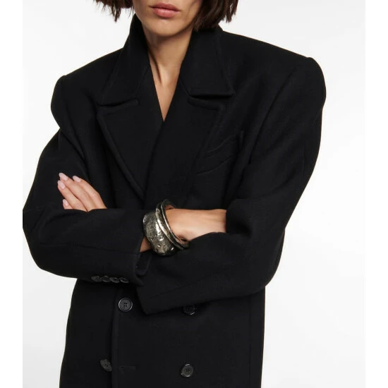 Saint Laurent makes a strong case for ethical elegance with this double-breasted coat. It’s made from pure regenerated cashmere and is tailored with oversized padded shoulders, notched lapels, and a chest pocket.