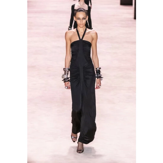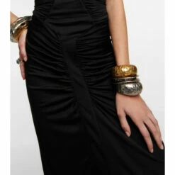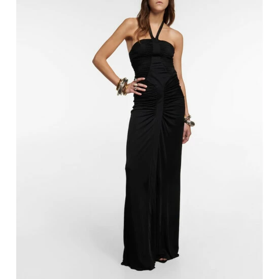 Saint Laurent is synonymous with a sensual take on French refinement. This maxi dress presents a feminine silhouette thatโs made of close-fitting jersey and sculpts the form with gathered ruching.