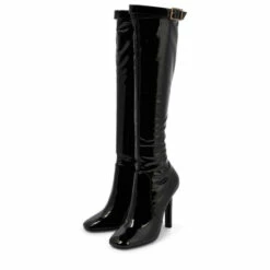 Polish off your everyday looks with the Elle knee-high boots from Saint Laurent. Made from glossy PVC and leather, the square-toe style has a streamlined silhouette and a crystal-embellished buckle at the top.