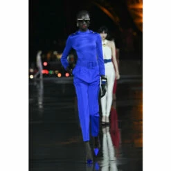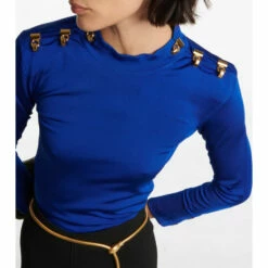 Saint Laurent amplifies your day-to-dark dressing with this top. The mockneck style is made from stretch-fused fabric with golden hook-and-eye fastenings across the shoulder seams and cuffs.