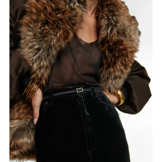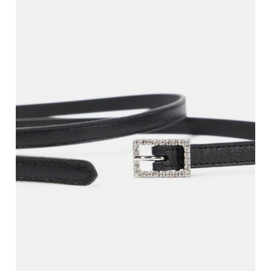 Accentuate your waist with this thin leather belt from Saint Laurent. The rectangular buckle is embedded with small crystals, for a chic look that is noticeable, yet refined.