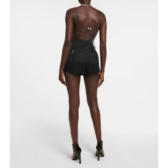 Airy and elegant, this Saint Laurent tank top is spun from pure silk in an open-knit construction. It’s dotted with shimmering crystals throughout that will catch the light when in motion.