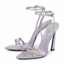 Start the party season on the right foot with these sandals from Saint Laurent. Made from lilac satin, this pointed-toe pair features crystal-embellished buckles adorning the slim straps.