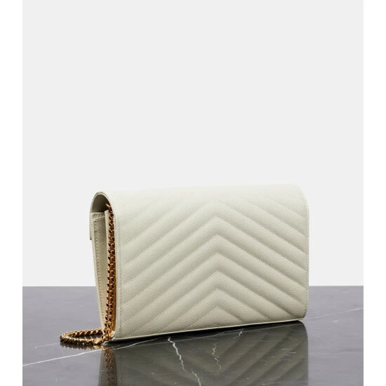Saint Laurent’s Envelope Small wallet on chain is made from white leather and topped with unmissable monogram hardware.