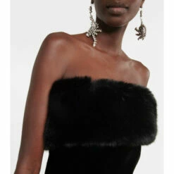 Go for full glamour with this strapless jumpsuit from Saint Laurent. Made from cupro velvet, it has flared legs and is trimmed with faux fur at the neckline.