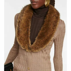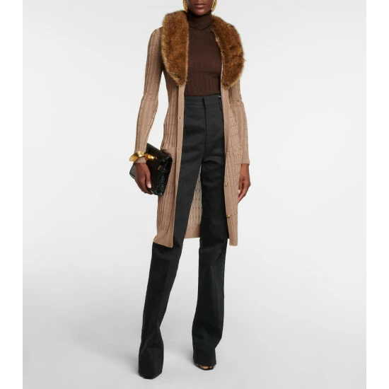 This longline cardigan from Saint Laurent is made from a ribbed knit viscose blend from sustainably managed forests. The chic, scooping collar is made from tonal faux fur.